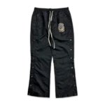 Wear the Saint Vanity Sweatpants black nylon track pants with a plain white or black hoodie for a clean, minimal streetwear base. Pair them with a bomber or puffer jacket for a layered urban look. Add sneakers and a cap for a simple finish. Keep upper pieces minimal so the black tone stays sharp and versatile. For a stronger outfit, stick to monochrome styling and let the track pants remain the foundation of the look.
